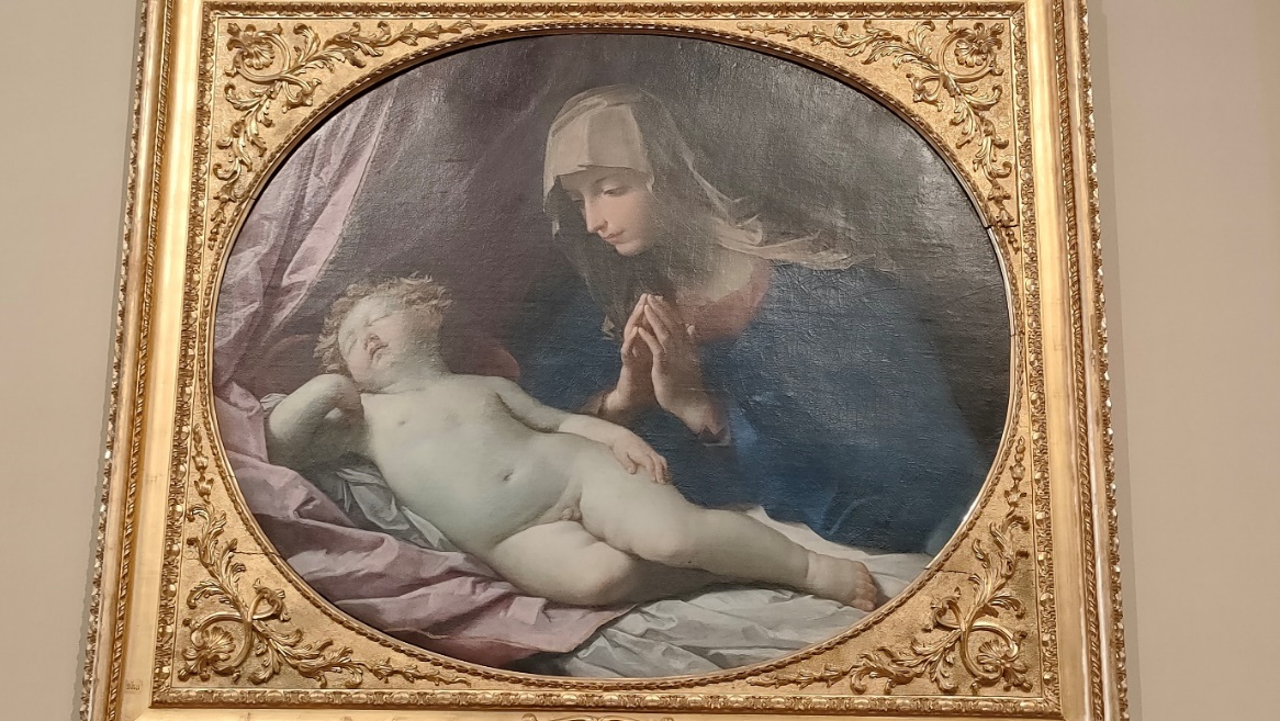 Il pittore emiliano Guido Reni è stato uno dei massimi esponenti del classicismo pittorico del Seicento. La composizione con la Madonna in preghiera che adora il bambino è una sua invenzione che, a seguito del successo riscontrato, ha poi avuto numerose repliche e varianti prodotte dalla sua bottega artistica. Questo dipinto può essere letto come una prefigurazione del sacrificio di Gesù.