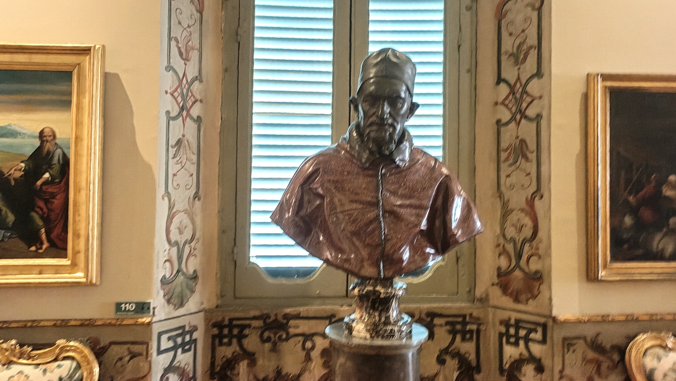 Il pontefice appare più massiccio e caratteriale rispetto al solenne busto del Bernini anche se è rappresentato più vecchio e affaticato rispetto al dipinto del Velàzquez.